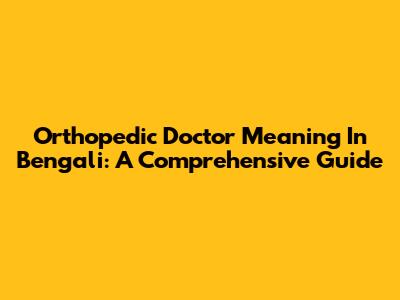 Orthopedic Doctor Meaning In Bengali: A Comprehensive Guide