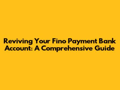 Reviving Your Fino Payment Bank Account: A Comprehensive Guide