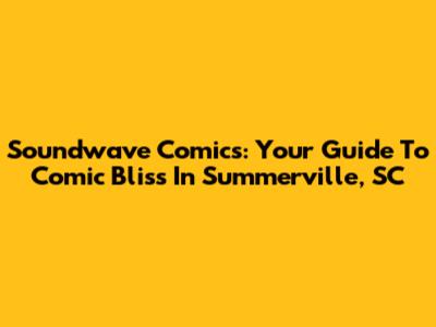 Soundwave Comics: Your Guide To Comic Bliss In Summerville, SC