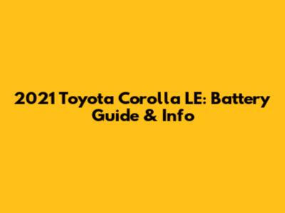 2021 Toyota Corolla LE: Battery Guide & Info