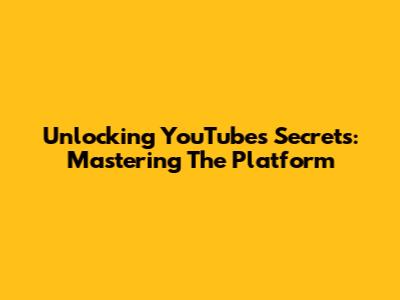 Unlocking YouTube's Secrets: Mastering The Platform
