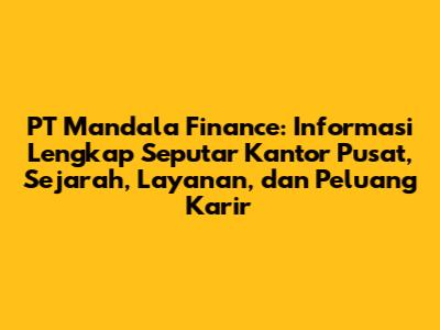 PT Mandala Finance – Pernahkah kalian mendengar nama perusahaan ini, guys? Bagi sebagian besar masyarakat Indonesia, khususnya mereka yang sering bersinggungan dengan dunia keuangan, nama Mandala Finance tentu sudah tidak asing lagi. Perusahaan pembiayaan ini memiliki peran penting dalam menyediakan solusi keuangan bagi masyarakat. Nah, dalam artikel ini, kita akan membahas secara mendalam seputar kantor pusat PT Mandala Finance, sejarah berdirinya, berbagai layanan yang ditawarkan, informasi seputar lowongan kerja, serta visi dan misi yang menjadi landasan perusahaan ini. Yuk, simak ulasan lengkapnya!