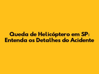 Queda de helicóptero em SP é uma notícia que gerou grande comoção e curiosidade. Se você está buscando informações sobre o incidente, chegou ao lugar certo. Vamos mergulhar nos detalhes do acidente, explorando o que sabemos até agora, as possíveis causas e as reações da comunidade. Acompanhe para ficar por dentro de todos os desdobramentos.