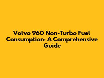 Volvo 960 Non-Turbo Fuel Consumption: A Comprehensive Guide