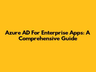 Azure AD For Enterprise Apps: A Comprehensive Guide