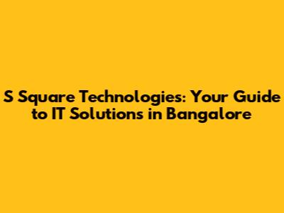 Hey there, tech enthusiasts! Bangalore, often dubbed the "Silicon Valley of India," is a buzzing hub for all things IT. And guess what? S Square Technologies is right in the thick of it! If you're looking for top-notch IT solutions, you've landed in the right place. In this article, we'll dive deep into what makes S Square Technologies a go-to choice for businesses in Bangalore and beyond. From their expertise to their services, we'll explore everything you need to know. So, buckle up, grab a coffee, and let's get started!