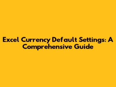 Hey guys! Ever found yourself wrestling with Excel's currency settings? You're not alone! Setting the default currency in Excel can be a bit tricky, but once you get the hang of it, it'll save you tons of time. This guide will walk you through everything you need to know, from changing the default currency symbol to customizing your financial formats. Let's dive in!