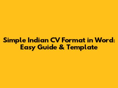 Crafting a simple yet impactful CV in Word, specifically tailored for the Indian job market, is an achievable goal. By focusing on clarity, relevance, and a well-structured format, you can create a document that effectively highlights your qualifications and increases your chances of landing your dream job. Remember, your CV is often the first impression you make on a potential employer, so make it count!