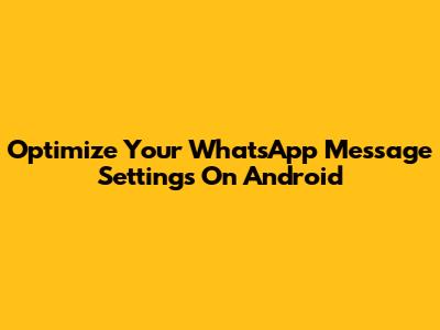 Optimize Your WhatsApp Message Settings On Android