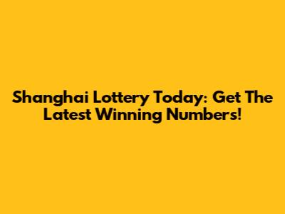 Shanghai Lottery Today: Get The Latest Winning Numbers!