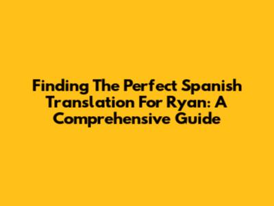 Finding The Perfect Spanish Translation For Ryan: A Comprehensive Guide