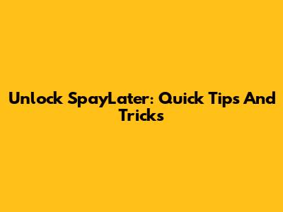 Unlock SpayLater: Quick Tips And Tricks