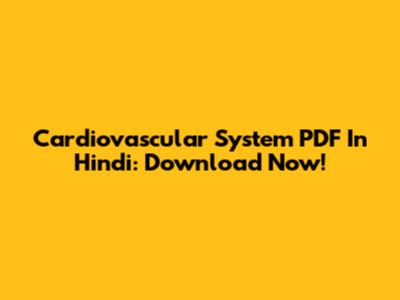 Cardiovascular System PDF In Hindi: Download Now!