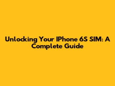 Unlocking Your IPhone 6S SIM: A Complete Guide