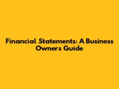 Financial Statements: A Business Owner's Guide