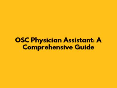 OSC Physician Assistant: A Comprehensive Guide