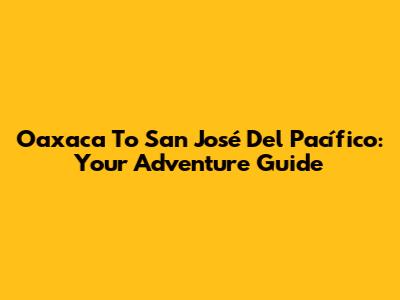 Oaxaca To San José Del Pacífico: Your Adventure Guide