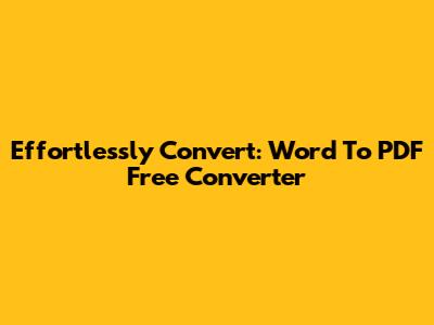 Effortlessly Convert: Word To PDF Free Converter