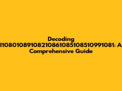 Decoding I10801089108210861085108510991081: A Comprehensive Guide