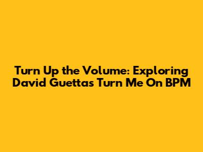 Alright, guys, let's cut to the chase: What is the BPM of "Turn Me On"? The track, known for its electrifying energy, typically clocks in at around 130 BPM. Now, for those who aren't familiar with music lingo, BPM is essentially the tempo of a song—how fast or slow the beat is. Think of it like the heartbeat of the track! This tempo makes "Turn Me On" super versatile, perfect for energetic workouts, a night out clubbing, or even just getting pumped up at home. Why does this number matter so much? Well, at 130 BPM, the song falls right in the sweet spot for many dance music genres, ensuring that it's danceable, but not too fast that you can't keep up, or too slow that it feels like you're stuck in a time warp. It’s no wonder David Guetta is one of the best DJs in the world.