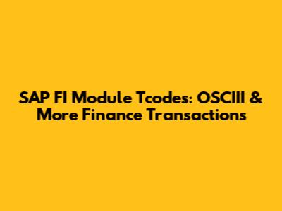 SAP FI Module Tcodes: OSCIII & More Finance Transactions