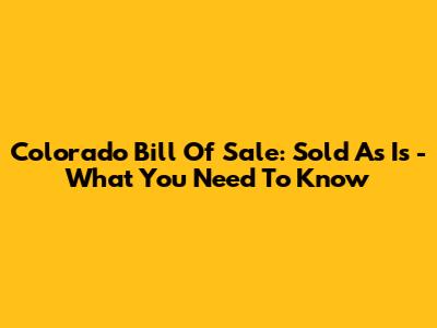 Colorado Bill Of Sale: Sold As Is - What You Need To Know