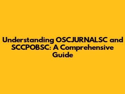 Practical Tips for Learning More About OSCJURNALSC and SCCPOBSC