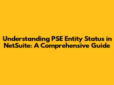 What is PSE Entity Status in NetSuite? Explained