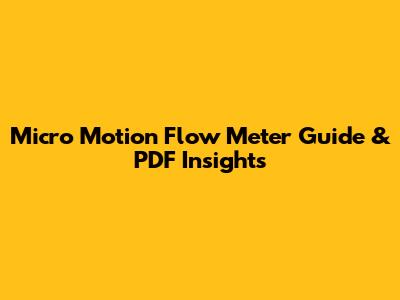 Micro Motion Flow Meter Guide & PDF Insights