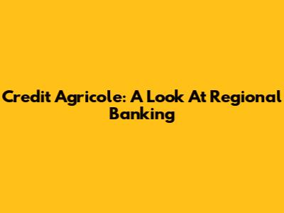 Credit Agricole: A Look At Regional Banking