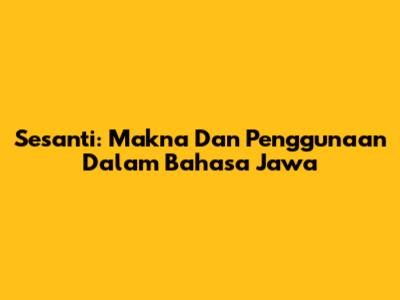 Sesanti: Makna Dan Penggunaan Dalam Bahasa Jawa