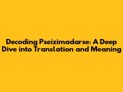 Decoding 'Pseizimadarse': A Deep Dive into Translation and Meaning