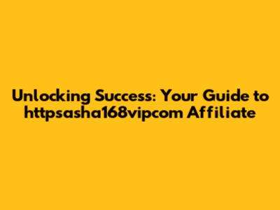 Unlocking Success: Your Guide To Httpsasha168vipcom Affiliate