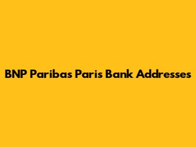 BNP Paribas Paris Bank Addresses