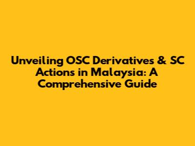 Hey guys! Ever wondered about the inner workings of Malaysia's financial markets? Specifically, have you heard about OSC Derivatives and SC Actions? If these terms sound like a foreign language, don't sweat it. We're diving deep into these topics, making them easy to understand for everyone. This guide will unravel the mysteries surrounding these critical components of Malaysia's financial landscape. We'll explore what they are, why they matter, and how they impact investors and the market as a whole. Buckle up, because we're about to embark on a journey that will demystify the complexities of OSC derivatives and Securities Commission (SC) actions in Malaysia. Let's get started!
