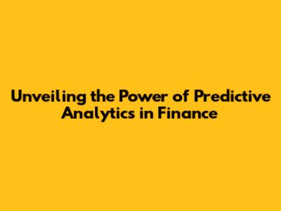Unveiling the Power of Predictive Analytics in Finance