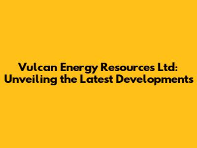 Hey everyone! Let's dive into the exciting world of Vulcan Energy Resources Ltd and explore what's been happening with this innovative company. We'll be taking a look at the latest news, key developments, and what it all means for investors and the future of sustainable energy. So, buckle up, guys, because we're about to embark on a journey through the fascinating landscape of Vulcan Energy Resources!