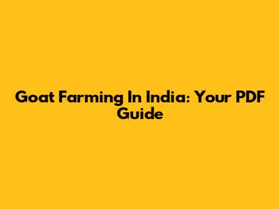 Goat Farming In India: Your PDF Guide