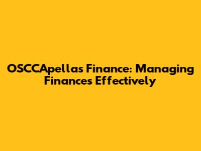 OSCCApellas Finance: Managing Finances Effectively