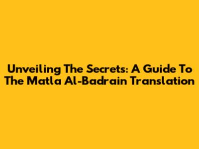 Unveiling The Secrets: A Guide To The Matla Al-Badrain Translation